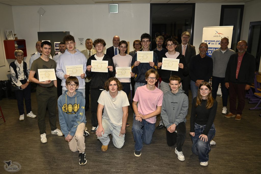 Ce mercredi soir 12 novembre, se déroulait au lycée Renaudeau à Cholet, la remise officielle des diplômes du Brevet d’Initiation Aéronautique session 2024-2025. Est-il encore nécessaire de souligner les excellents résultats de ses élèves depuis de nombreuses années au sein du lycée, sous l’impulsion de leur très motivé professeur David Lecuyer ? Aussi pour souligner ces remarquables résultats, nombre de personnalités régionales étaient présentes à cette cérémonie. Ainsi après le mot d’accueil du proviseur du lycée Monsieur Gérard Heinz, les discours s’égrenèrent, avec notamment Madame Jeanneteau : adjointe au maire de Cholet, Ammar Hadji : conseiller municipal (Informatique – Technologies nouvelles), mais aussi Madame Isabelle Leroy : vice-présidente de la région. Bien sur aussi présente l’armée de l’Air et de l’Espace, partenaire privilégiée de cette formation innovante était représentée notamment par le Colonel Giraud du C.D.C. de Cinq-Mars-la-Pile et l’adjudant–chef Cohin du CIRFA d’Angers. Valéry Soulard le fondateur de la société Hélicopt’Air qui offre chaque année un vol en hélicoptère aux élèves avait fait le déplacement. Enfin, notre aéro-club, partenaire depuis de très nombreuses années était bien évidemment présent, avec notamment son président Xavier Manceau, accompagné de Jean-Yves Berçon pilote baptiseur et de Christophe le correspondant B.I.A. pour l’aéro-club. Après les traditionnels discours de félicitations et la remise des diplômes ainsi que de quelques cadeaux, la cérémonie se finalisa par une traditionnelle photo de groupe avec la nouvelle promo puis un verre de l’amitié. Il n’est pas à douter que la future promo fera aussi bien !