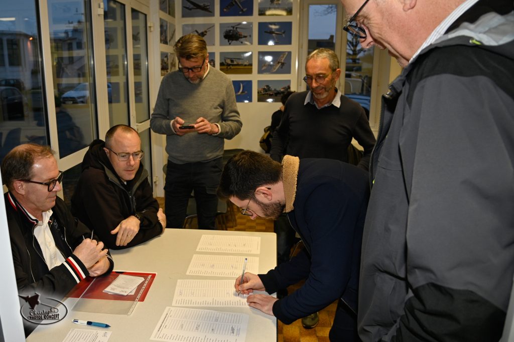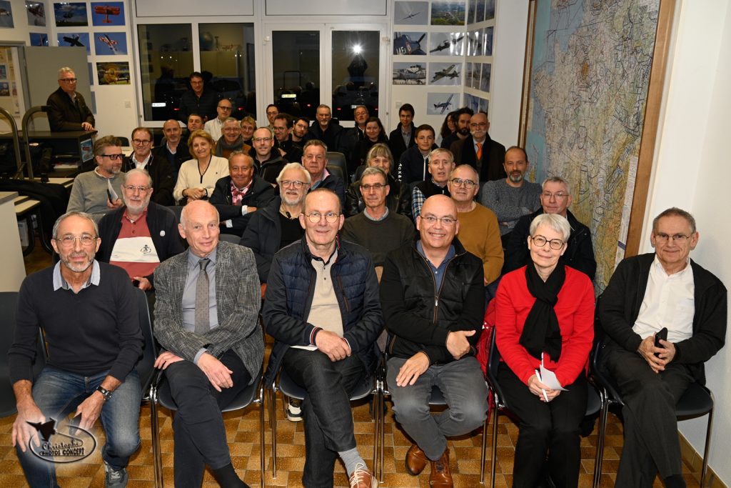 Ce vendredi soir, se déroulait la traditionnelle assemblée générale de notre aéroclub. Nombreuses et nombreux étaient les pilotes présents à ce moment essentiel dans la vie de notre association. Après le traditionnel mot de bienvenu de Xavier notre président, celui-ci revint sur les différents événements ayant ponctués l’année écoulée et sur ceux d’or et déjà prévus pour 2026. Puis un point financier souligna la bonne santé économique de notre association et les investissements à venir pour maintenir une flotte cohérente et en parfait état, à même de répondre à l’instruction des élèves pilotes mais aussi aux vols de nos adhérents, ainsi qu’à l’accueil du public lors des vols de découverte. La sécurité, affaire de tous, fut de nouveau abordée par Cédric. Enfin, il fut procédé à l’élection de nouveaux membres bénévoles qui intègrent le bureau, ainsi qu’aux renouvellements de membres qui arrivaient à échéance de leur mandat. Nous souhaitons ainsi la bienvenue aux nouveaux bénévoles du bureau : Pascale, Jean-Luc et Eric. L’occasion est donnée de souligner le travail dans l’ombre mais indispensable des membres de ce bureau. Nous reviendrons plus particulièrement sur celui de Nadine, qui pendant plus de onze ans a œuvré inlassablement en son sein pour son fonctionnement et son rayonnement : MERCI Nadine !!! Avec son mari Jean-Michel (autre pilote émérite de l’aéro-club à l’origine de l’organisation de nombreux voyages pour notre association), ils partent sous d’autres cieux pour d’autres aventures. Nous leurs souhaitons bons vols avec nos sincères remerciements pour toutes ces années de partage !